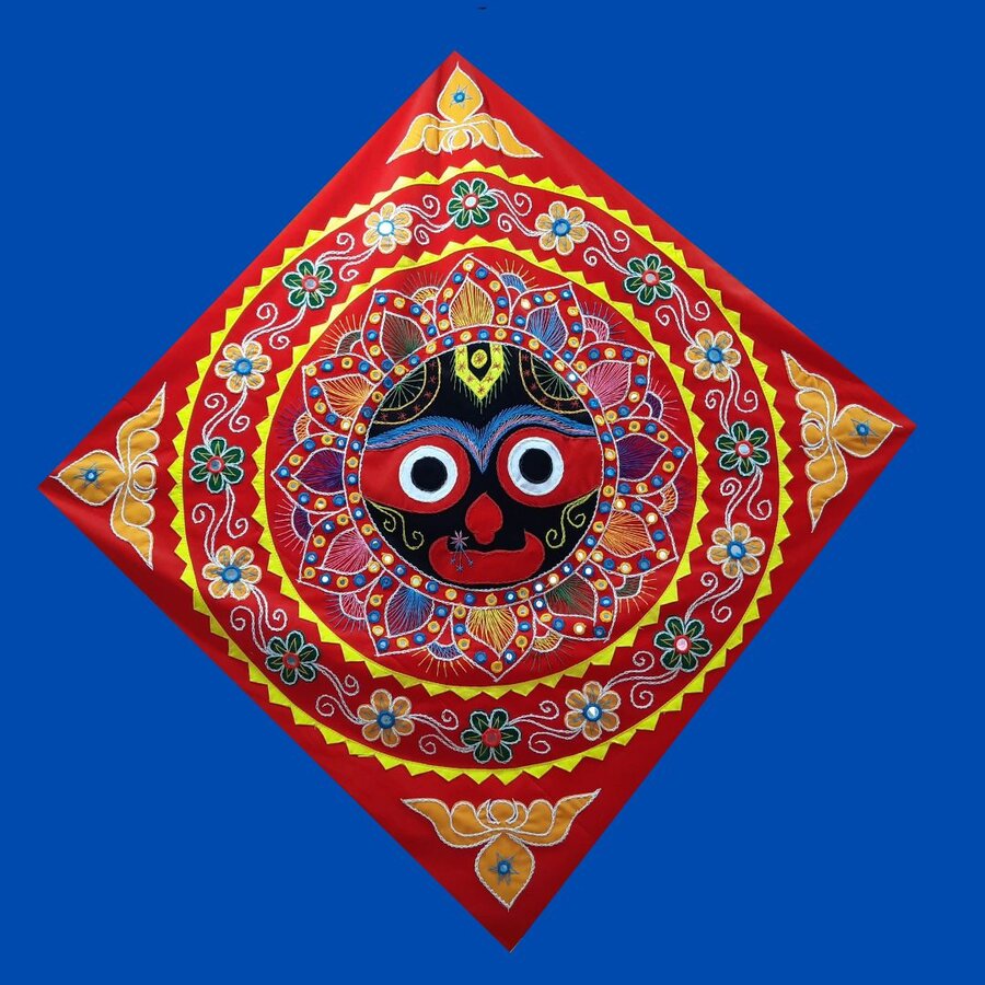 + Free Shipping| This Red With Black Lord Jagannath Chandua is a beautiful and it is made of high-quality fabric and features a hand-painted image of Lord Jagannath. This can be used as a canopy which is traditionally carried by devotees during religious processions. It is a symbol of protection and devotion, and it is sure to add a touch of elegance and spirituality to your home. |